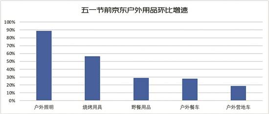 在淄博烧烤热潮的带动下,烧烤成为这个假期的C位关键词,4月中下旬,京东“淄博烧烤”搜索量环比增长9倍,“烧烤”搜索量也环比增长38%,“烧烤食材”和“烧烤炉”增长40%,体现在消费上,野餐相关的户外商品最受欢迎,在增幅前五的品类中占据了三席,烧烤用具、野餐用具、户外餐车将在各地的露营营地中一展身手。