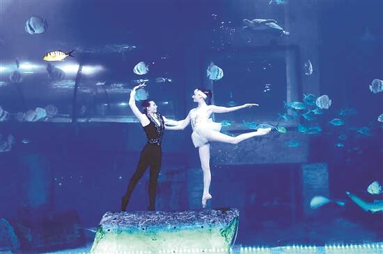 正佳极地海洋世界“五一”期间上演的海底天鹅湖表演 景区提供