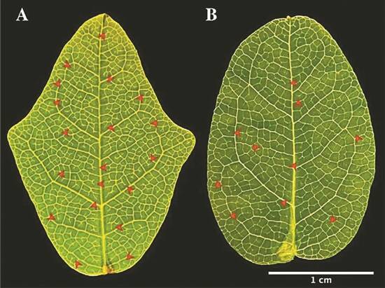 未发生拟态的避役藤叶片(A) 与发生拟态的叶片(B)(资料图片)