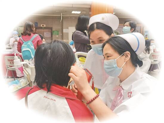 佛山市第一人民医院耳穴疗法名医护士工作室的黄雪芳为患者做治疗