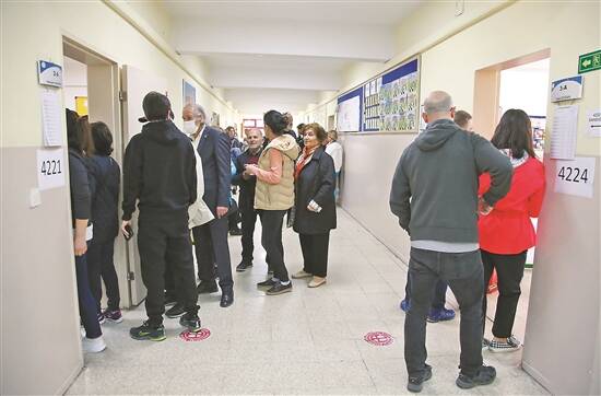 5月14日,在土耳其安卡拉,民众在一处投票站等候参加投票 新华社发