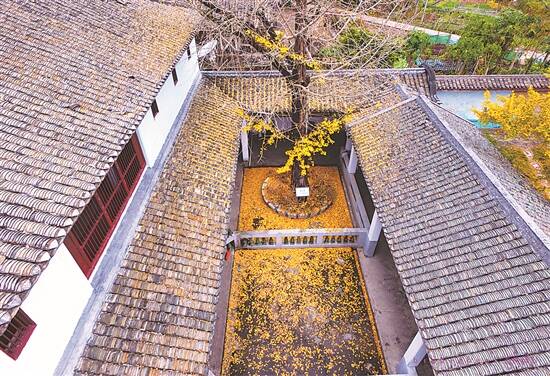 侨乡村毅成公家塾百年银杏秋日落叶纷飞 南口镇政府供图