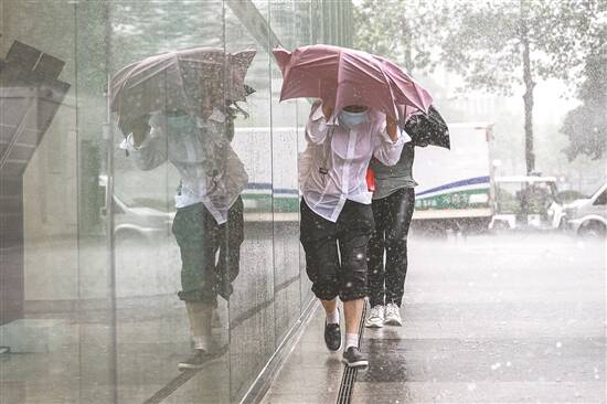 天河区市民冒着大雨在街上行走(资料图) 羊城晚报记者 钟振彬 摄