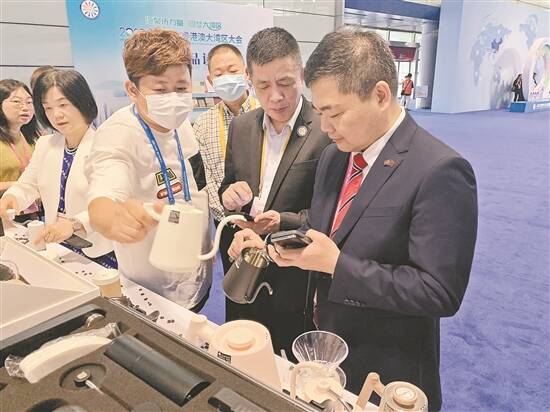 柬埔寨潮人海外联谊会会长江旭忠则对江门生产的咖啡杯、咖啡壶留下深刻印象。江旭忠家族在柬埔寨一直经营着咖啡品牌,是咖啡产业的行家。他说,江门出产的一些咖啡冲调制作设备,已经具备国际一流的品质水平,在国际市场上很有竞争力。“现在江门有物流铁路通向东盟,我觉得两地的咖啡产业可以加强交流合作。柬埔寨当地的优质咖啡豆可以进入江门市场,而江门的咖啡设备也可以到东盟销售。”江旭忠表示,回去之后将好好谋划,利用江门打造侨都咖啡的机会,开拓湾区市场。