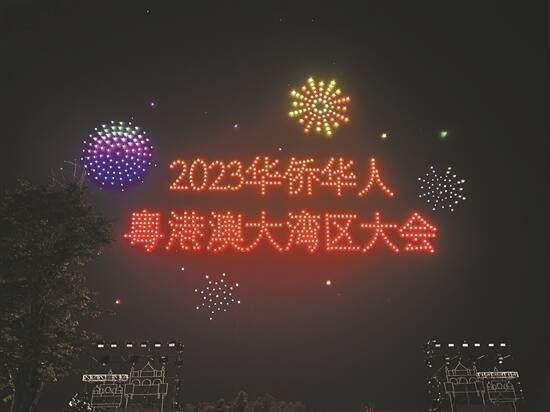 17日晚的开平赤坎华侨古镇,鱼灯闪闪、星光熠熠。2023年中国(江门)侨乡华侨华人嘉年华如约而至。江门开平籍香港青年、粤港澳大湾区青年总会主席吴学明带来了888架无人机。当晚,无人机腾空而起,从“点点星光”逐渐汇聚成大湾区11座城市的地标建筑图案,在夜空中绽放异彩。