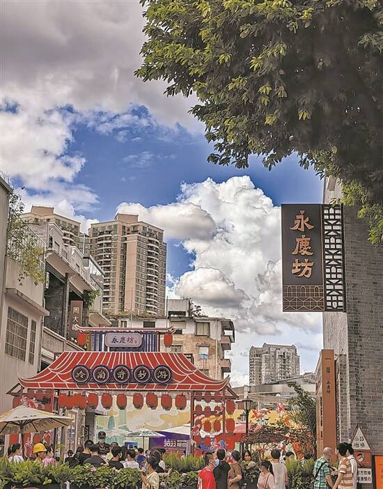 永庆坊在文化传承与生活延续中注入新活力,注重活态保护,突出“留人、留形、留神韵”,力求“见人、见物、见生活”,结合文旅融合、经济发展、游客口味等“新需求”,将物质文化遗产和非物质文化遗产有机融合,重新激发老城市街区的传统文化活力。