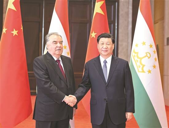 拉赫蒙表示,塔中关系建立在高度互信、相互尊重、相互支持的基础之上。今年是塔中建立战略伙伴关系十周年,两国关系已经成为国与国睦邻友好、真诚合作的典范。塔方坚定不移恪守一个中国政策,坚定不移致力于发展塔中战略伙伴关系,构建塔中命运共同体。这符合两国和两国人民的根本利益。塔方支持中方提出的全球安全倡议、全球发展倡议、全球文明倡议,愿推动塔国家发展战略与共建“一带一路”倡议深度对接,借鉴中国发展经验,加强两国经贸、产能、农业、交通、绿色经济、人文等领域合作。塔方愿同中方一道,开好首次中国-中亚峰会,建设好中国-中亚机制。