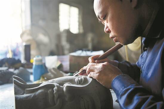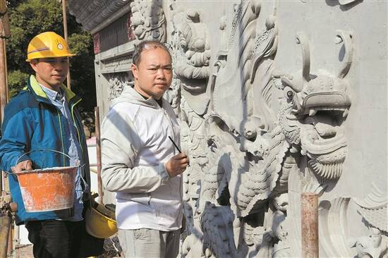 近两年,是丰收年,何世良获得第四届广东省中青年德艺双馨作家艺术家称号,整了三年的大砖雕作品也完工。年轻的雕塑作品 《古韵薪火·盛世腾芳》在展现,在凝固。