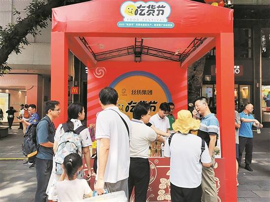 “欢迎试喝鲜榨桑果汁,现场购买有优惠!”“燕窝糖、鸡仔饼,老广必备!”在广州北京路步行街黄金地段,多个标有“吃货节”专区的摊位正提供食品试吃、促销折扣等优惠活动,吸引了不少逛街的市民前来打卡消费。