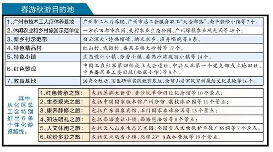 近年来,广州各区积极推动乡村“颜值”与“品质”并驾齐驱,高标准打造广州市技术工人疗休养基地、休闲农业和乡村旅游示范单位、新乡村示范带、特色精品村、特色小镇、红色景观、教育基地等100多个旅游景点,全市各工会组织可根据实际需求,开展“党建日”“疗休养”“亲子游”“送关爱”等主题文旅体验、户外拓展、研学打卡活动,寻访乡村故事、共享建设成果,努力实现发展成果人人共享,更好地满足广大职工群众对美好生活的向往,带动乡村旅游经济复苏和腾飞。