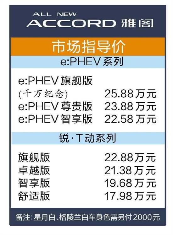 据悉,全新雅阁的7个版本,涵盖了e:PHEV强电智混车型市场指导价22.58万-25.88万元,锐·T动车型市场指导价17.98万-22.88万元。尤为细心的是,为了让更多年轻人更加轻松入手,广汽本田推出多项限时权益。锐·T动舒适版以上车型的购车用户可享至高万元置换补贴和三年6次免费基础保养,按揭可享“首付2万元起,或最高5年0息”超值金融政策,全款购车可享6000元保险补贴;e:PHEV车型购车用户可享充电桩免费送装服务,至高万元置换补贴和三年6次免费基础保养;同时全系还可叠加车机流量5年无限畅享,整车3年或10万公里质保,三电8年或15万公里质保等多重限时权益。