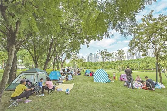 自去年1月以来,广州市林业和园林局向社会公布第一批公园绿地开放搭帐篷区域,市民尝到绿色惠民成果。“很庆幸市区有宽阔的草坪,公园草坪免费开放给市民游玩无疑是一项惠民措施,让我们可以带小孩到草坪玩,接触、享受大自然……”周末,市民梁小姐约上好友,一起带孩子们到广州珠江公园大草坪游玩,享受户外悠闲。