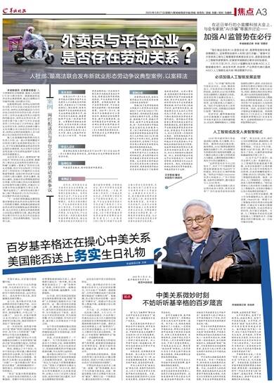 中国有两句古话,一句是“家有一老,如有一宝”,还有一句是“不听老人言,吃亏在眼前”。目前在美国,没有谁比百岁基辛格更有国际事务方面的经验,希望美国一些政客能好好听一听这位百岁老人的“好言相劝”,在相互尊重、平等相待的基础上,推动中美关系长期稳定和互利共赢。