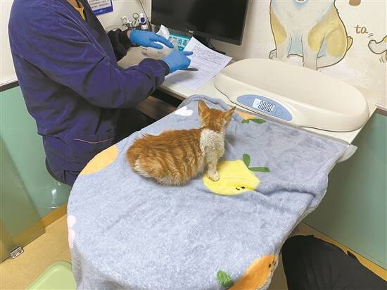 陆清把一只患有口炎和猫传腹的流浪猫带到宠物医院治疗