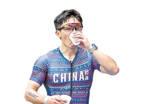 铁人三项选手在比赛中补水(资料图) 主办方供图