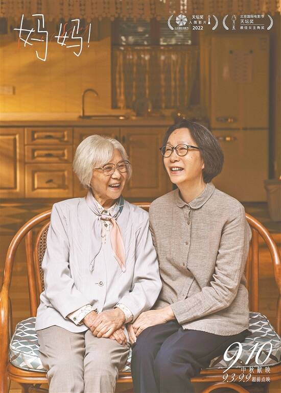 2022年,由吴彦姝和奚美娟共同出演的电影《妈妈!》则将老年题材影片推向了公众视野,引发广泛讨论。片中85岁母亲和65岁女儿共同生活。阿尔茨海默病让女儿逐渐失忆并失去自理能力,而年迈的母亲以顽强的生命力照顾女儿,两个年迈的生命在病痛的阴霾下,彼此成全,闪烁出生命和人性之光。