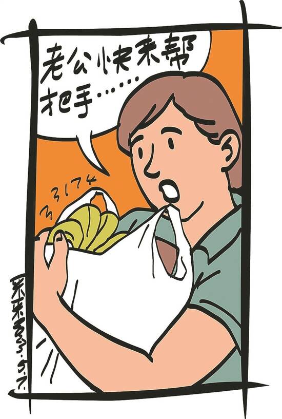 直到傍晚,袁小方提着大包小包回来了,开门锁时便叫嚷:“老公快来帮把手,累死我了。”