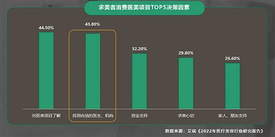 作为医美行业的第一生产力,医生的重要性不言而喻,艾瑞咨询调研数据显示,一名合适的医生是求美者医美决策的关键性因素。