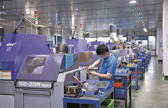 5月29日下午,记者来到阳江市江城银岭科技产业园,走进史特牢公司的精密件加工车间,看到偌大的生产车间干净整洁,在4名工程师的操控下,40余台数控生产设备有序运转,日夜不停,一颗颗螺丝落入底盘的声音,奏响了产业发展协奏曲。
