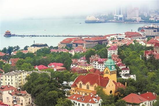 红瓦绿树、碧海蓝天——这是人们对青岛最直接的印象。从信号山走到小鱼山,人们就走进了红、绿、蓝的色盘里。登高揽胜,红瓦绿树相掩映,极目远眺,是海天一色的蓝。山下的黄县路、龙江路、大学路……每一个拐角都是风景,印上“青岛”两字的事物,总在不经意间跃然眼前,吸引着打卡的游人,提醒着你这些浪漫的归属。