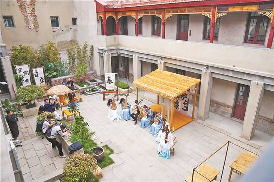 再往老街里走去,有青岛独具特色的“里院”。里院之于青岛,有如四合院之于北京,弄堂之于上海,承载了几代青岛人的居住记忆。如今,青岛市正进行历史城区保护更新攻坚行动,里院被修旧如旧、活化利用,焕发出新的活力。百年前的“三江会馆”,如今摇身一变为“三江里”,上演国潮音乐会,打造出沉浸式文旅体验新场景,院内还有书店、民宿、咖啡馆、复古照相馆……老建筑与多元的时尚业态相结合,画上了一抹斑斓的新色彩。