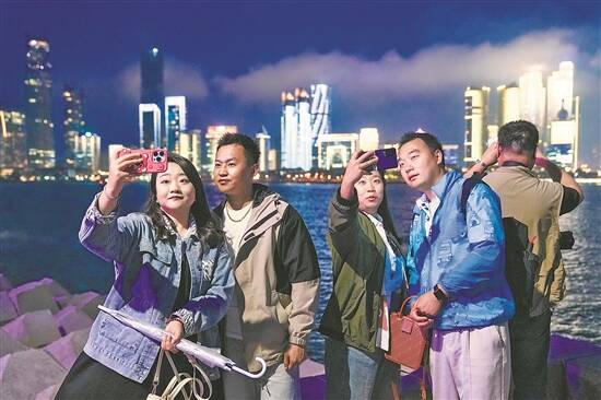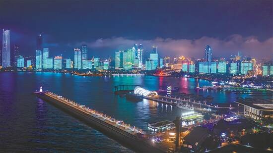 行至天色的“蓝调时刻”,奥帆中心情人坝上,弦乐奏响浮山湾。来自艺术快闪的悠扬琴声,为一水相隔的城市灯光秀伴奏和鸣。与此同时,坝上的酒屋饭馆摆开了台面,啤酒、海鲜、烧烤……食客们吹拂着轻柔的海风,享受着味蕾的跳动。观海湾、听天籁、眺灯光、品美食,青岛海湾的美,是多重感官的畅享体验。