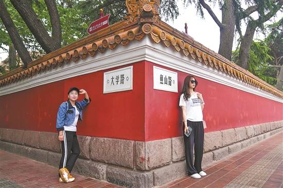 青岛市美术馆外的大学路和鱼山路转角处外墙,成为了许多游客打卡的“网红墙”
