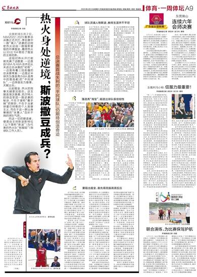 北京时间6月5日、8日、10日,NBA2022-2023赛季总决赛将继续展开第二、三、四场较量,面对在首战中显示出绝对优势的丹佛掘金,迈阿密热火能否打出坚韧表现延续系列赛悬念?热火主帅斯波斯特拉将出哪些奇招获得场上优势?面对掘金的“铁桶阵”,热火当家球星巴特勒能否打出正名之战?这些都将成为下周总决赛的看点。