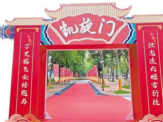 广州天河中学考点设置了“凯旋门” 羊城晚报记者 何宁 摄