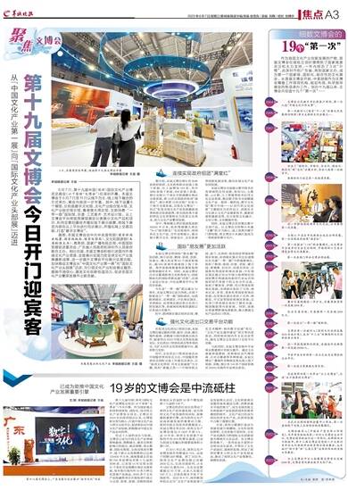 作为我国文化产业创新发展的产物,首届文博会在报批立项时便得到了国家高度关注和大力支持,一年内经历了3次“升格”,由深圳市到广东省、再到国家主办,成为第一个国家级、国际化、综合性的文化展会。从首届文博会开始,中宣部就作为文博会筹备工作领导机构,规划布局、科学指导展会的各项承办工作。创办十九届以来,文博会共创造十九个“第一次”——
