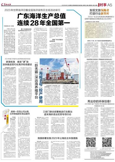 羊城晚报讯 记者袁增伟、全良波,通讯员湛新报道:6月6日上午,以“耕海牧渔 奋发‘湛’放”为主题的2023年湛江市现代化海洋牧场活动月在雷州流沙湾渔港码头启动,同步举办“海威2号”养殖平台投产活动。