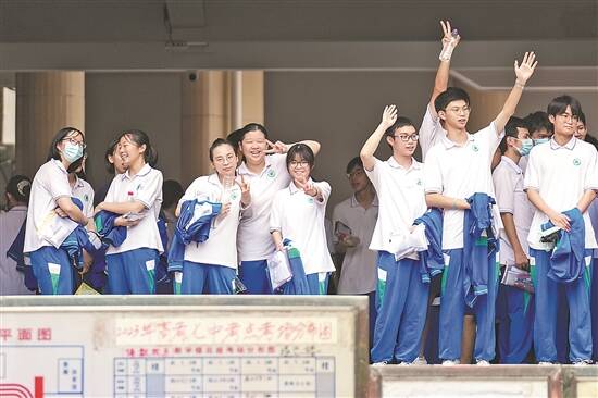昨日下午,广州市第七中学考点,考生们信心满满,轻松上阵 羊城晚报记者 梁喻 摄
