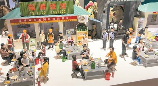 在山东展区,以“好客山东 好品山东”为主题的展览,全面展示山东文旅融合发展的新成就和文化“两创”的新成果。其中,首次参展企业占比达50%。记者在现场看到,淄博小虾米软陶艺术工作室带来了2.8米长的“淄博烧烤”系列微场景,用软陶泥塑的表现形式生动还原现实场景,展现了不一样的“淄博烧烤”。展位相关负责人表示,希望通过手艺人的技术、情怀宣传淄博烧烤。