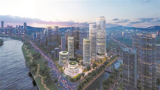 从现场可见,该项目建筑群所构成的天际线,由南向北爬升,“既能让项目与金融城建筑群和谐相处,其形象又能脱颖而出,我们想用现代建筑表达中国‘和而不同’的哲学理念。”Anna强调。