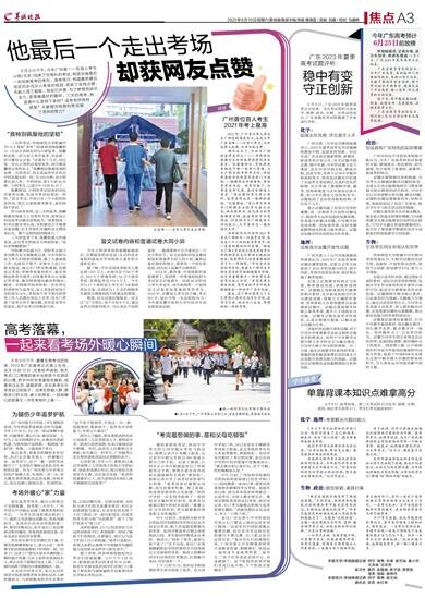 关于地理,同学们普遍反映相比此前的练习难度较为平稳。在华附考点,地理考试后,来自广东戏剧舞蹈职业学院的杨同学第一个踏出考场。她表示,地理题目涉及洋流、沙丘等考点,“还可以,都在复习范围之内。”