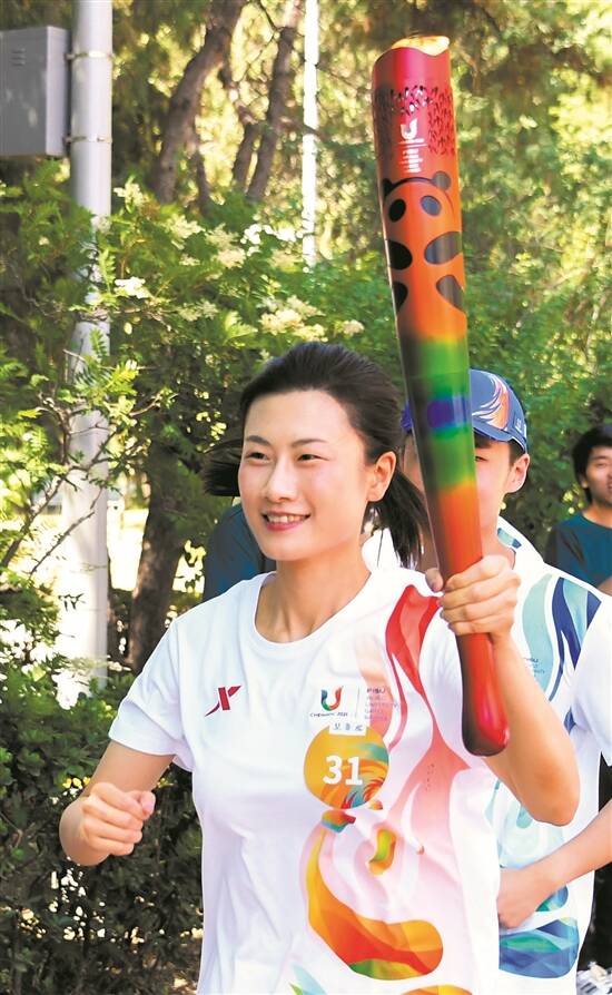 6月10日,第31届世界大学生夏季运动会火炬传递启动仪式在北京大学举行。当天31棒火炬手依次传递火炬“蓉火”,从百周年纪念讲堂广场出发,途经北大图书馆、博雅塔、未名湖、李大钊像、革命烈士纪念碑等,返回百周年纪念讲堂广场。