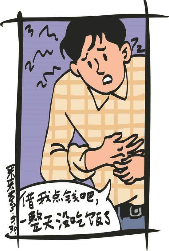 周宇出小区大门没几步,脑子里正思索着今天要打的彩票号码,就被突然从桂花树下闪出来的一个身影吓了一大跳。一个小青年带着几分怯懦说:“大哥,帮帮忙,借我点钱吧,一整天没吃饭了。”周宇狐疑地看着这个年轻人,衣服穿得还算得体,只是领口的确有些脏,估计好几天没洗澡了。