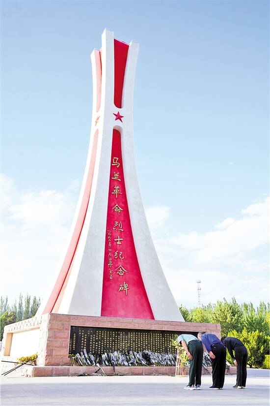 郭玉明、崔宏亮、陈红穗向马兰革命烈士纪念碑鞠躬