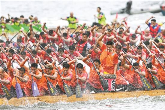 17日,广州国际龙舟邀请赛传统龙决赛上演,6支传统龙舟队在珠江上展开激烈角逐 羊城晚报记者 钟振彬 摄