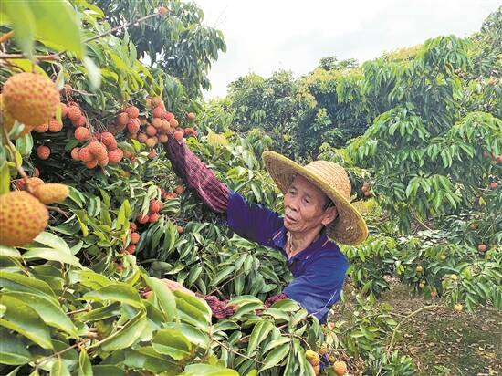记者在宅梧镇荷村走访时看到,当地荔枝即将大量上市,不少农户开始筹备荔枝的采摘工作。当地农户罗仲仪每天都到果园里走一走、瞧一瞧。看着茂密的果树枝头,挂满了鲜红的荔枝,他喜笑颜开。