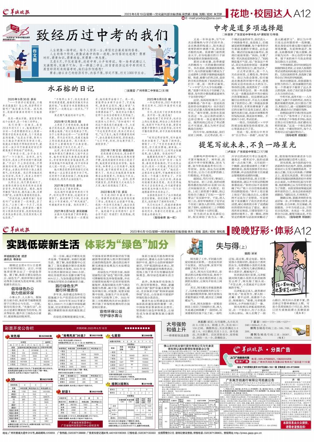 第A12版:花地·校园达人;晚晚好彩·体彩;广告