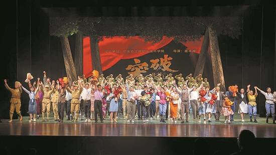 羊城晚报讯 记者崔文灿, 通讯员罗研、曾永红摄影报道:由广东农工商职业技术学院出品的大型原创话剧《突破·北纬十七度》近日在广东歌舞剧院小剧场首次公演。