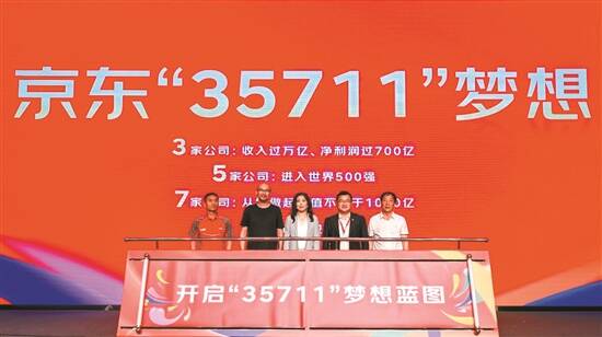 更值得一提的是,京东集团CEO许冉还在京东“618”老友汇上解读了京东“35711”梦想。就在6月18日上午,京东向56万名员工发送了《凝心聚力迈向“35711”梦想》,正式提出了面向未来20年的“35711”梦想:京东能有3家收入过万亿元、净利润过700亿元的公司,5家进入世界五百强的公司,7家从零做起市值不低于1000亿元的上市公司,能为国家缴纳1000亿元税收,提供超过100万个就业岗位。