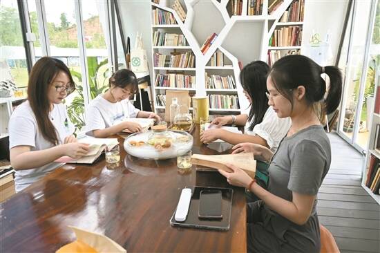 游客们喜欢在书吧一边看书,一边叹茶 蔡华海 摄