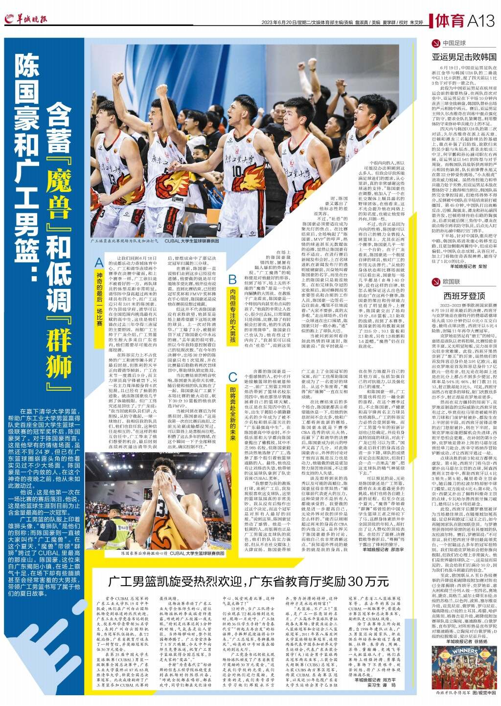 陈国豪和广工男篮:含蓄“魔兽”和低调“群狮”