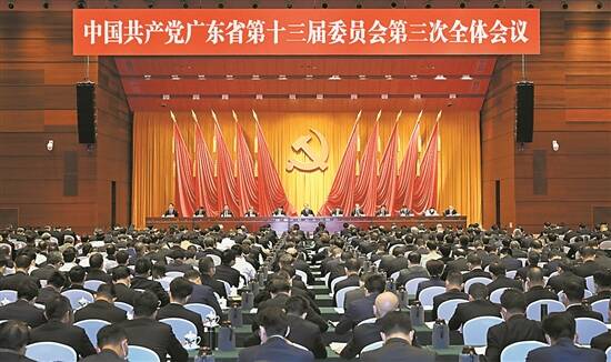 羊城晚报讯 6月20日,中国共产党广东省第十三届委员会第三次全体会议在广州召开。会议以习近平新时代中国特色社会主义思想为指导,深入学习贯彻党的二十大精神和习近平总书记视察广东重要讲话、重要指示精神,围绕实现总书记赋予的使命任务,进一步深化新时代新征程广东现代化建设的具体部署,带领全省上下坚持以高质量发展为牵引,奋力在推进中国式现代化建设中走在前列。省委书记黄坤明代表省委常委会作报告。