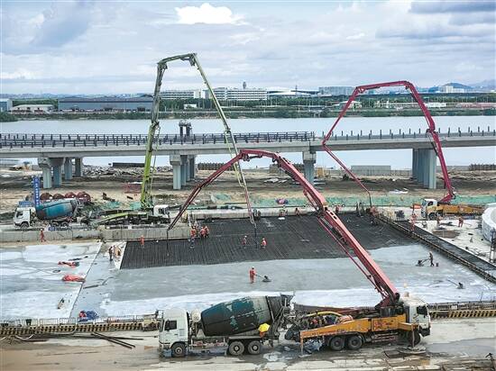 深中通道东人工岛正在浇筑主线隧道最后一段顶板混凝土 羊城晚报记者 李一 赵永才 摄