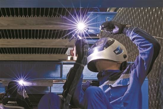 外企助力粤智造,图为安德里茨(佛山)车间工人焊接组装散热板 梁喻 摄