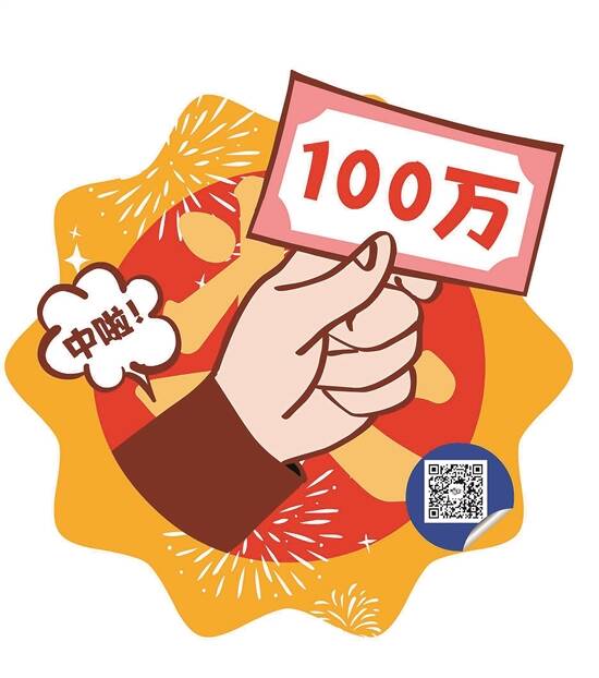 当发现“1”后面的“0”越来越多时,黄女士的心情开始激动起来。最后当票面全部刮开时发现奖金是100万元时,她完全不敢相信是真的,直到销售员帮其确认后,才慢慢缓过劲来。