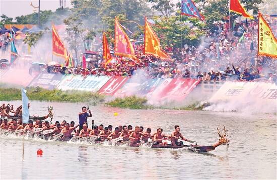 时隔5年,“三夹腾龙”再度擂鼓响锣,气氛依旧热烈澎湃。河道里,健儿们纷纷拿出看家本领弄潮挥桨、竞渡争锋,上演“速度与激情”;观赛台上,人潮涌动,欢呼声、加油声不绝于耳。诗人丘麦有诗曰:“猎猎旌旗彩球飘,挟风裹雨卷热潮。蛟龙出海扬逝水,壮士挥桡劲斜腰。呐喊声声惊天响,鼓锣两两动地摇。河青岸绿成图画,逐浪飞舟竞轶超。”香港鹤山同乡会副理事长麦炳球表示,无论在气氛、规模,还是运动员的全情投入等方面,“三夹腾龙”都更胜一筹。
